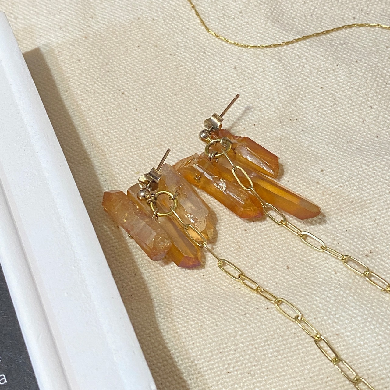 ゴールドチェーンの組み合わせがお洒落なピアス。